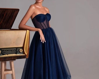 navy blue midi dress