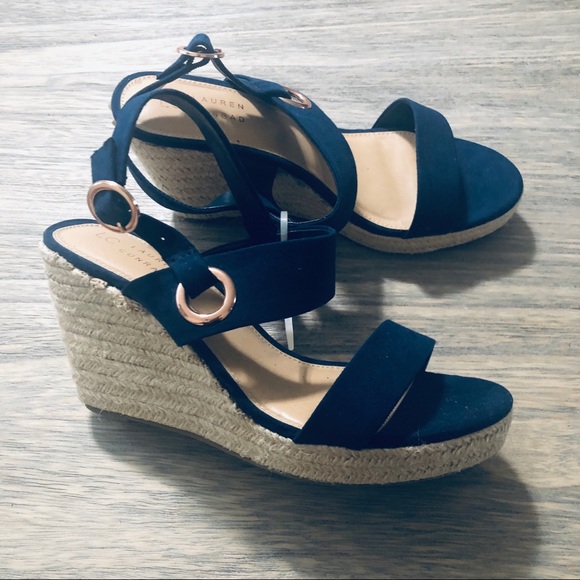 navy blue wedge sandals