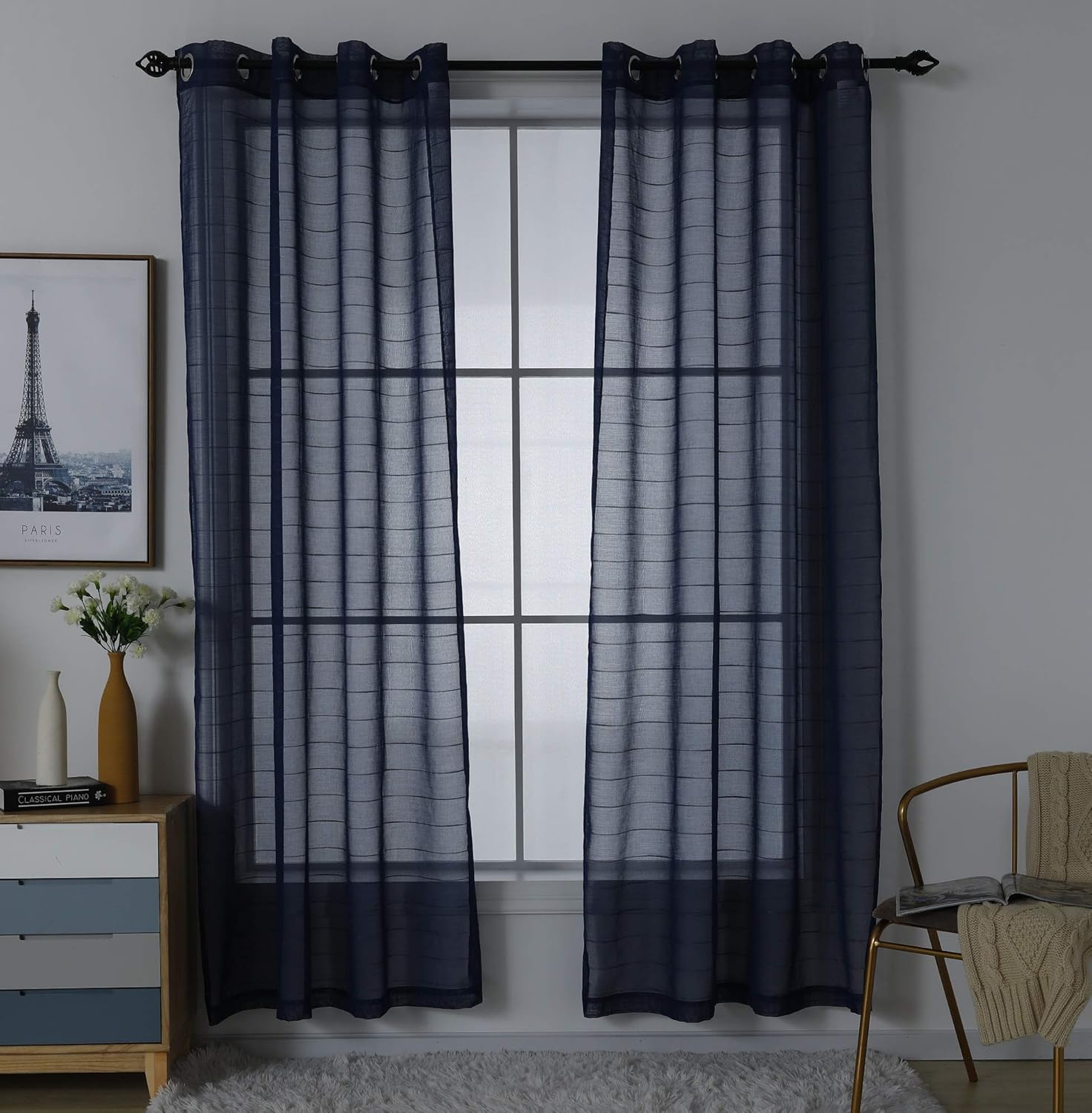 navy striped curtains