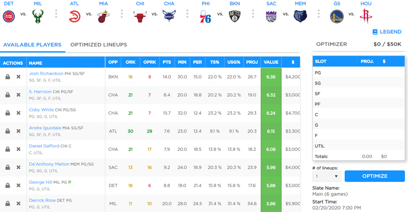 nba fanduel optimal lineup