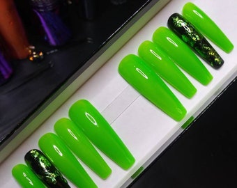 neon green and black nails