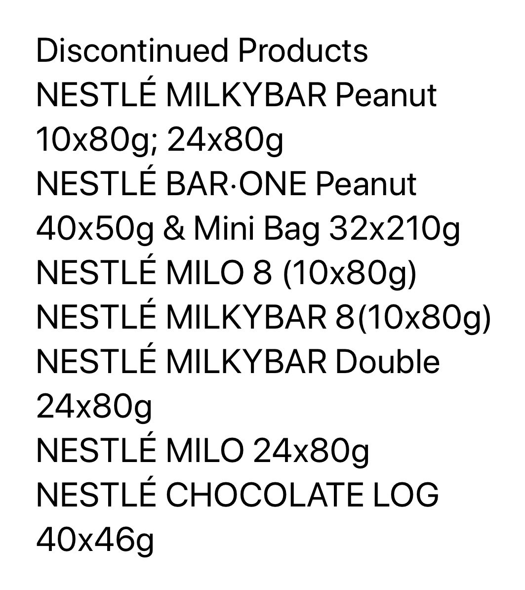 nestle chocolates discontinued