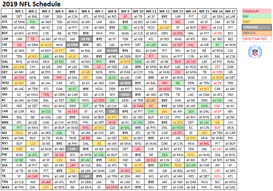 nfl schedules 2019