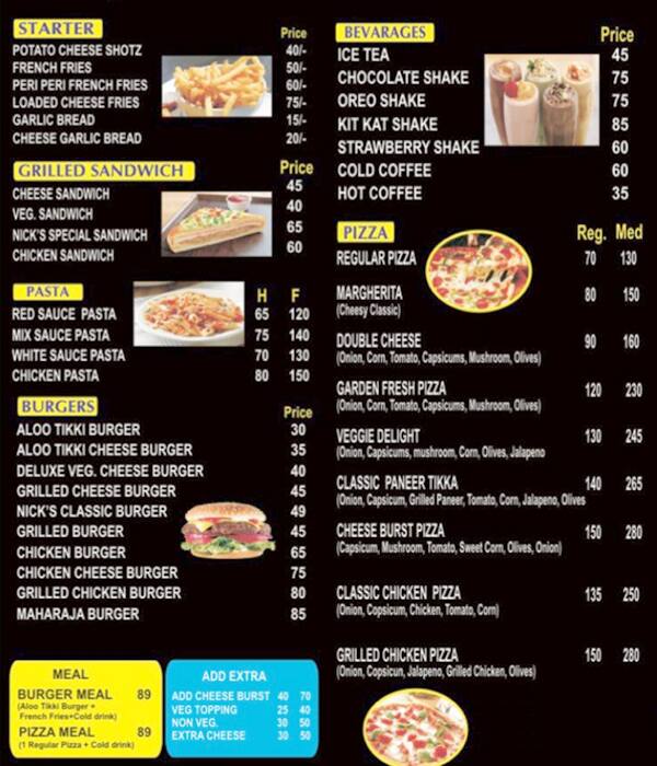 nick's pizza menu