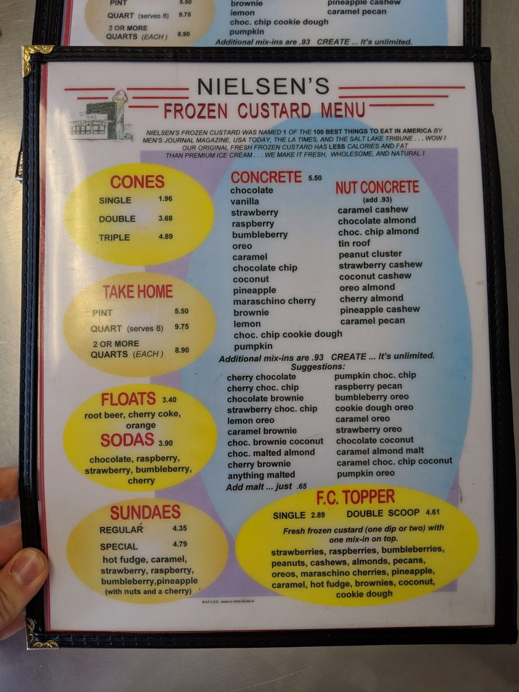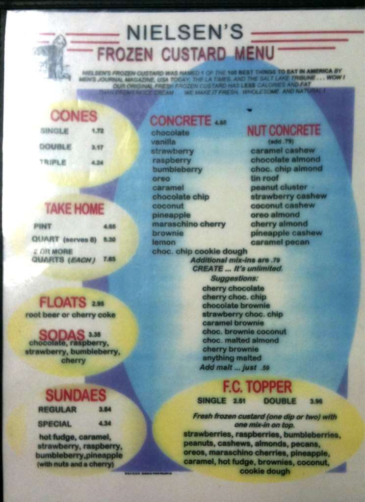 nielsen's frozen custard menu