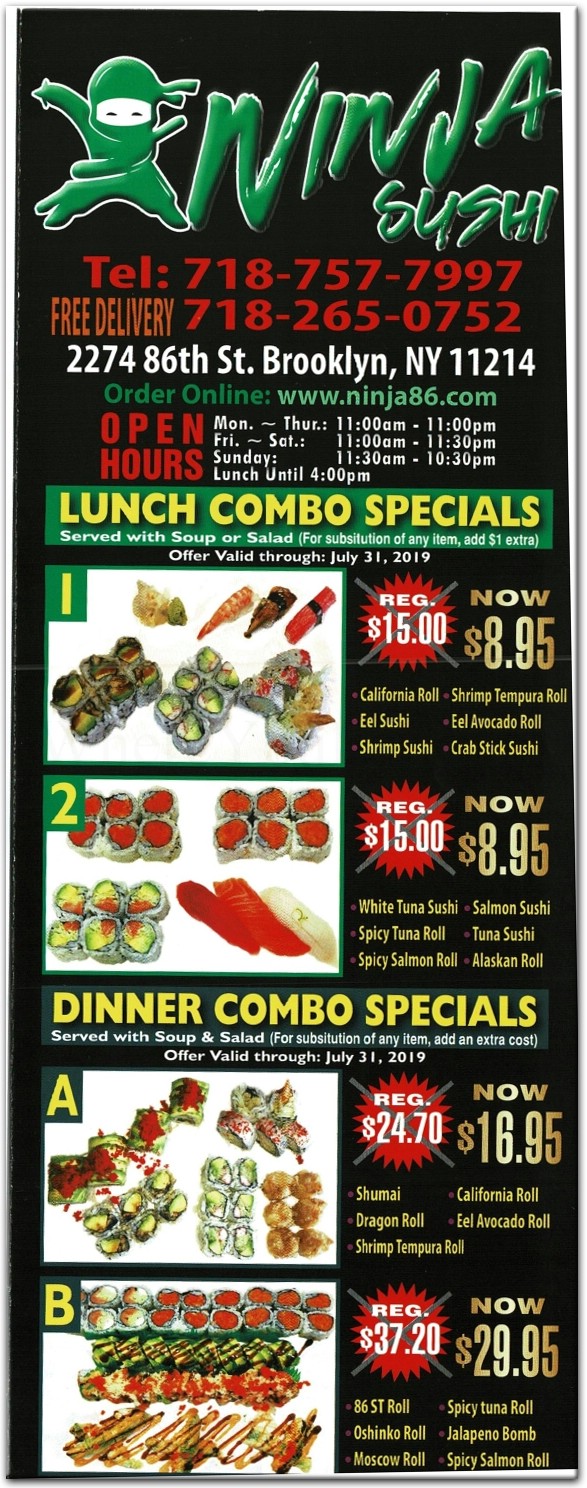ninja sushi menu