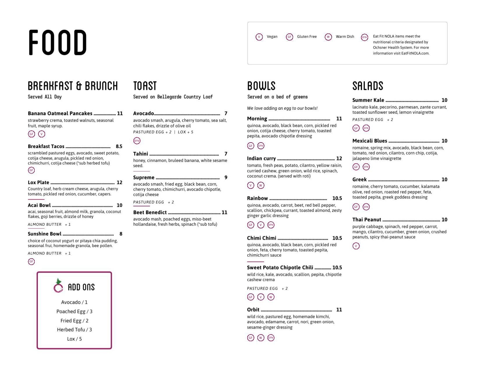 nola menu
