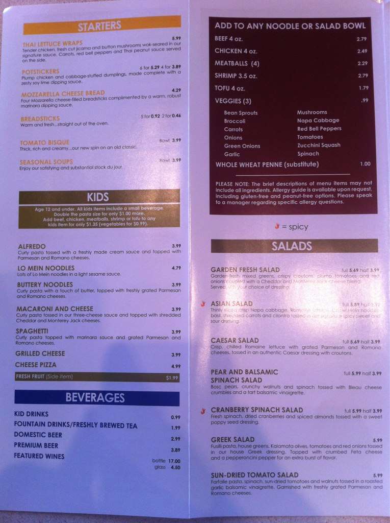 nothing but noodles menu