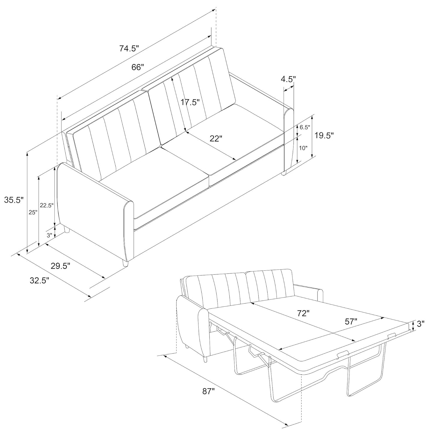 novogratz brittany sleeper sofa with memory foam mattress