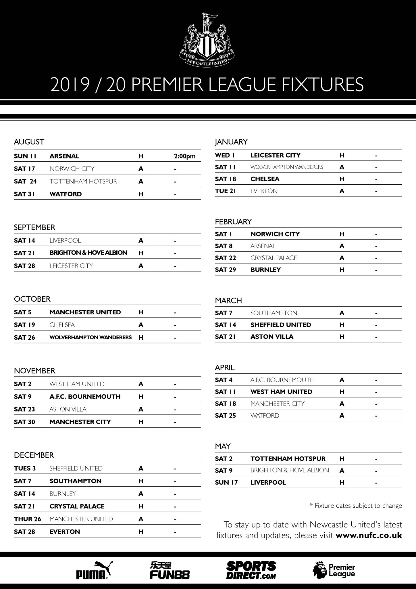 nufc fixtures on tv