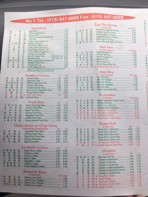 number 1 chinese menu