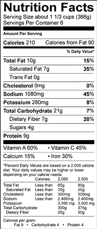 nutrition facts red pepper