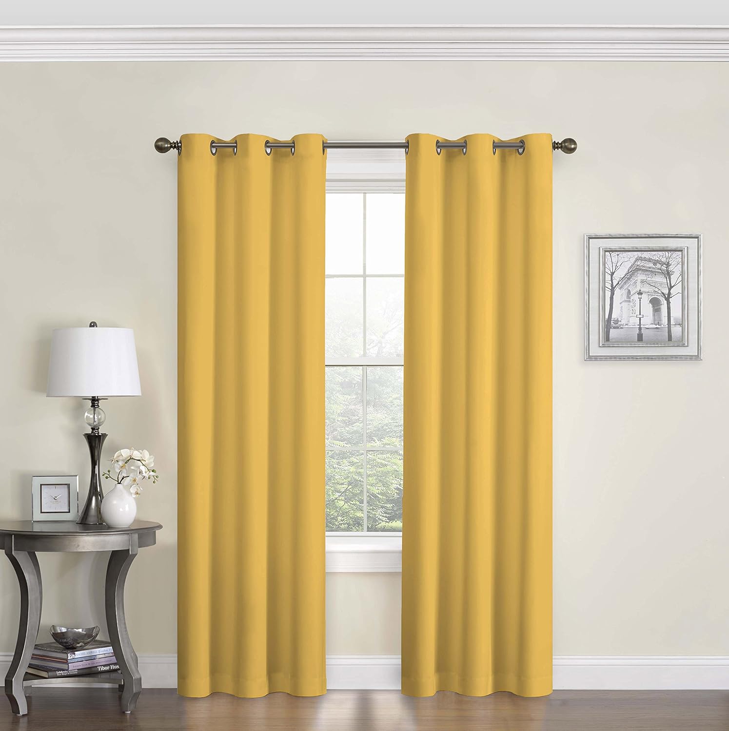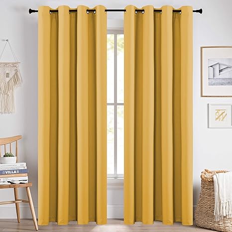 ochre and grey curtains