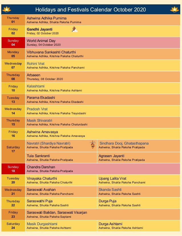 october 2020 calendar with festivals