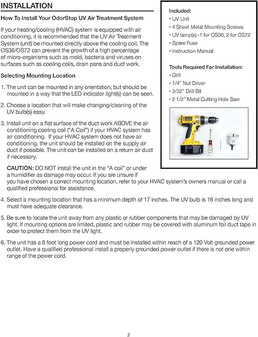 odorstop uv light sanitizer for hvac