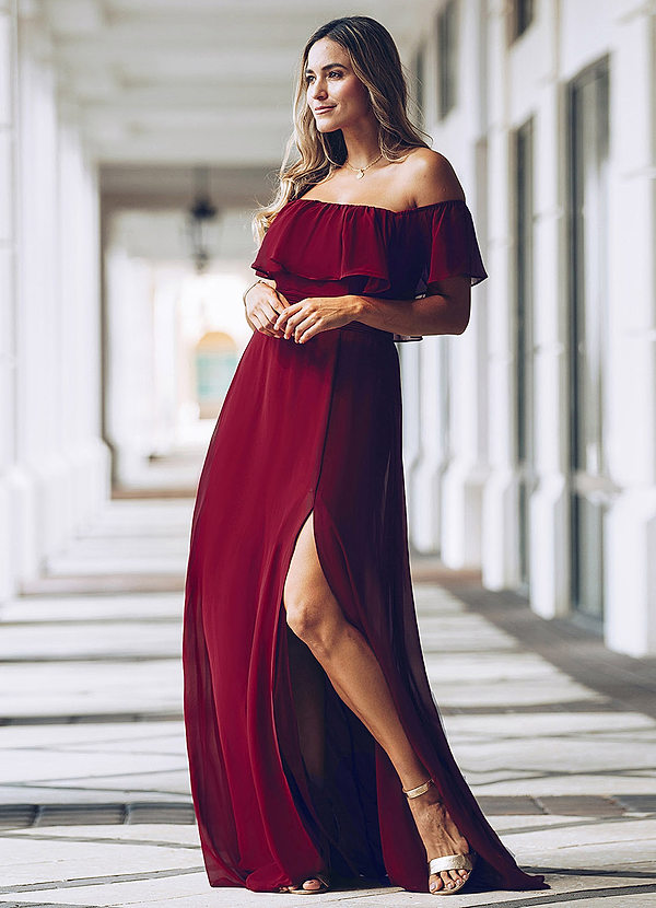 off shoulder dress gown