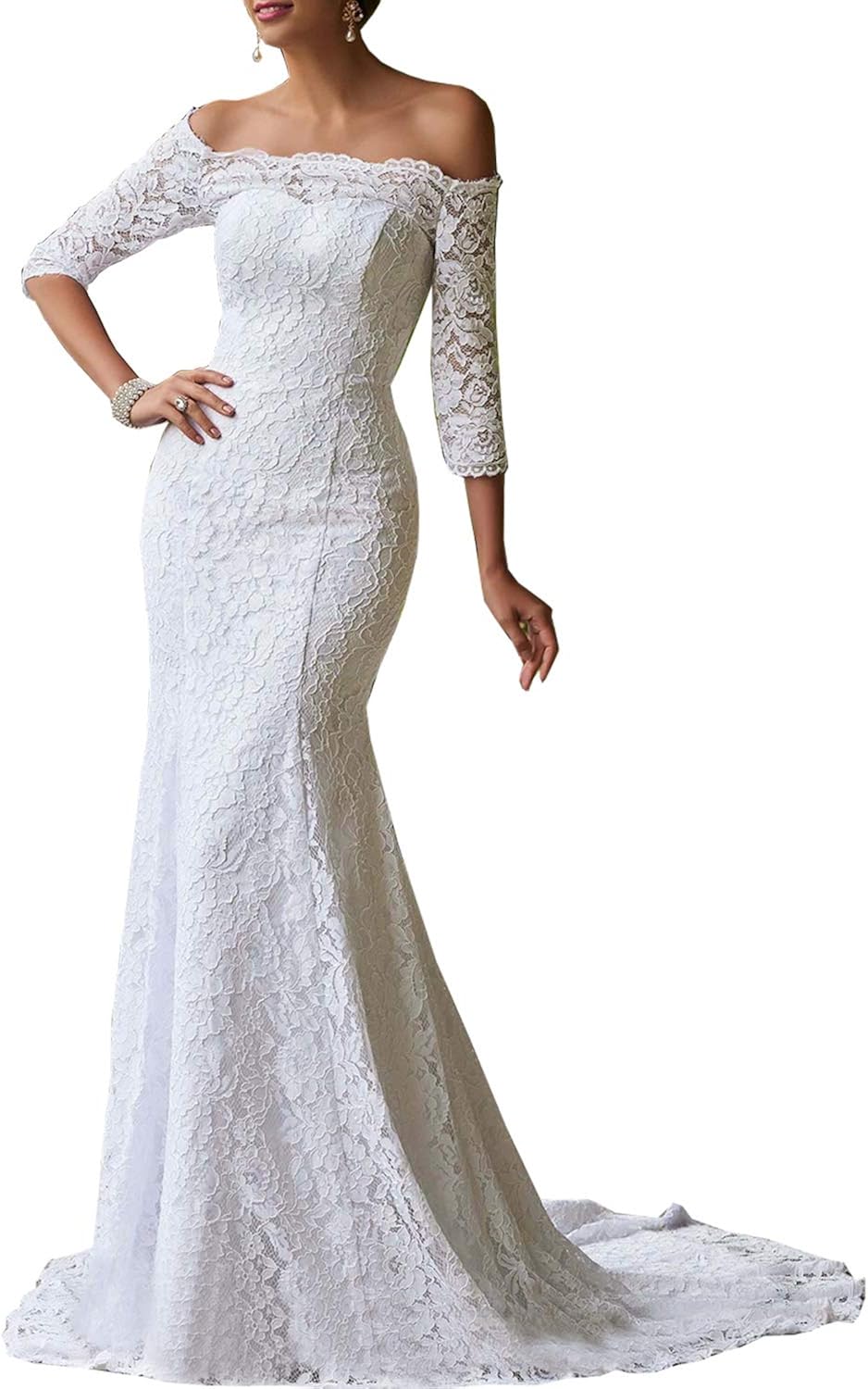 off the shoulder lace wedding dress