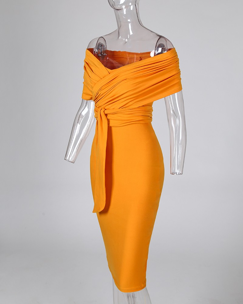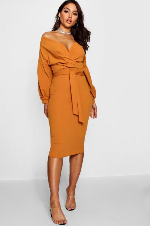 off the shoulder wrap dress