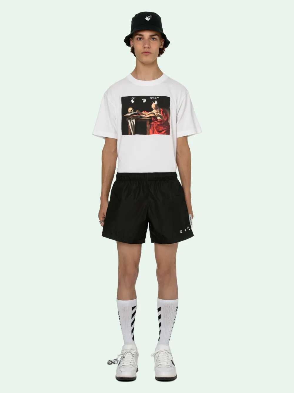 off white swim shorts