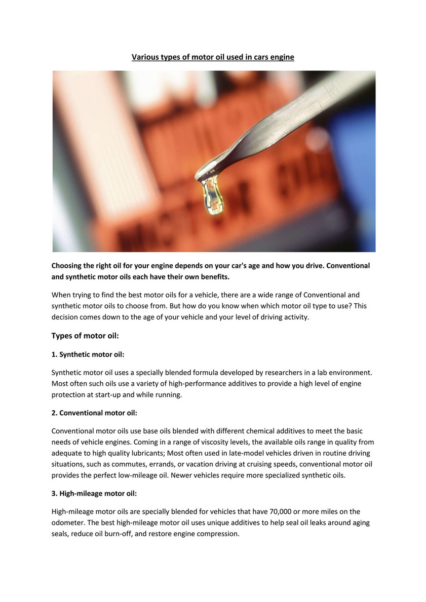 oil type for my car