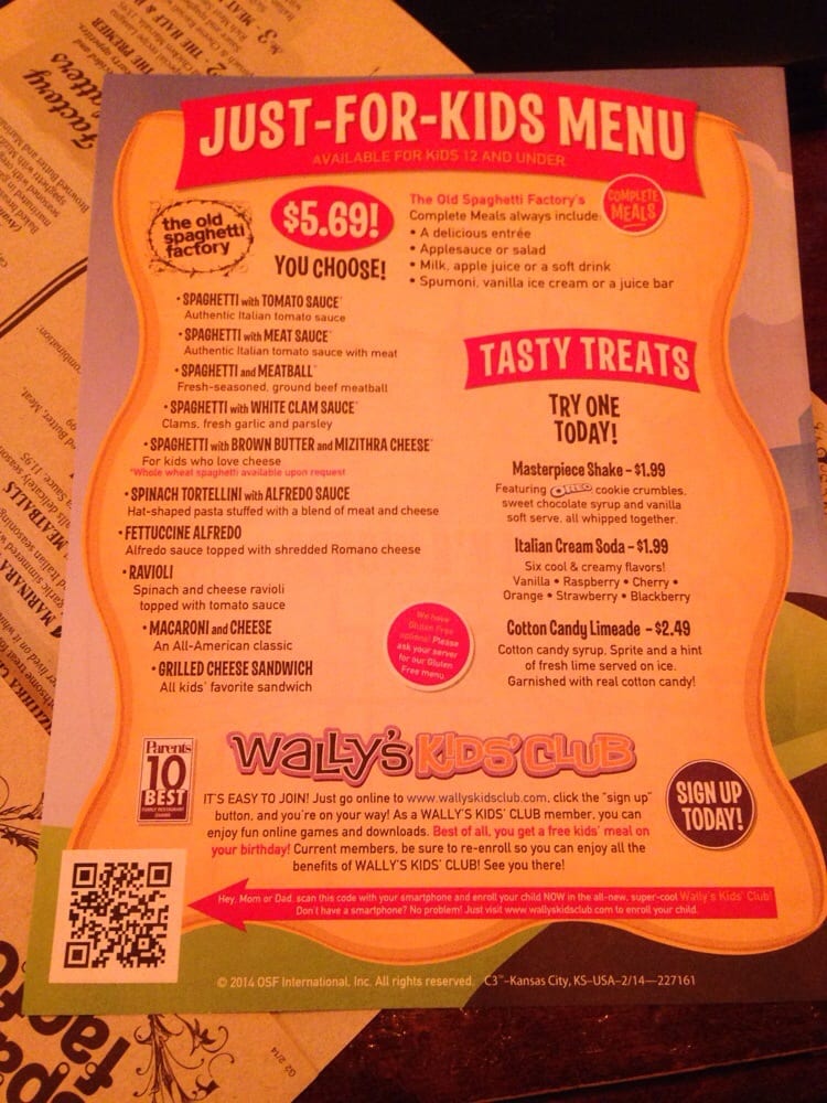 old spaghetti factory menu