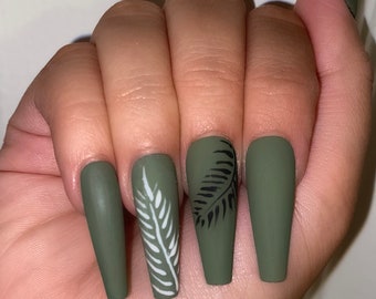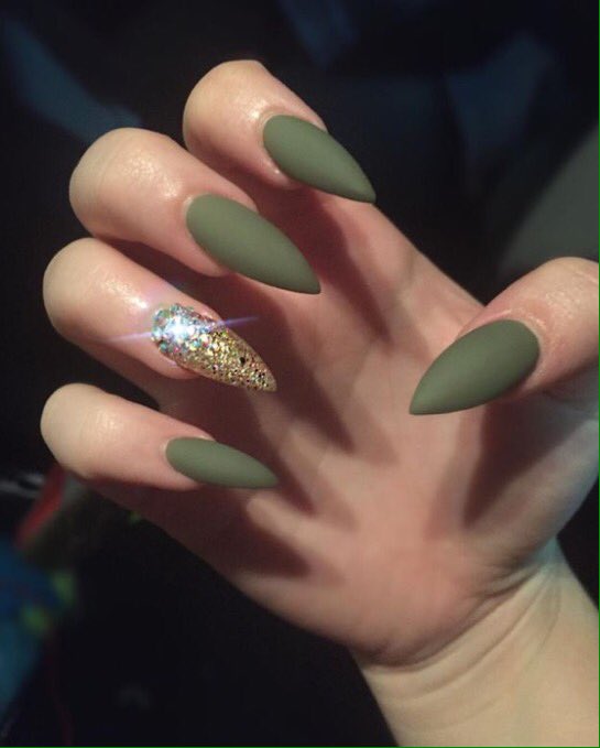 olive green matte nails