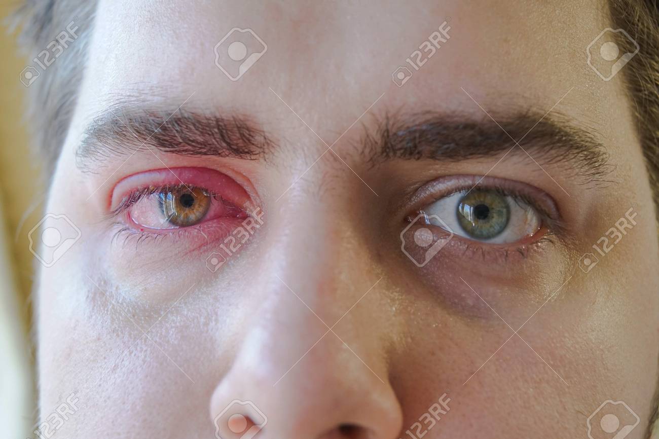 one eye is red