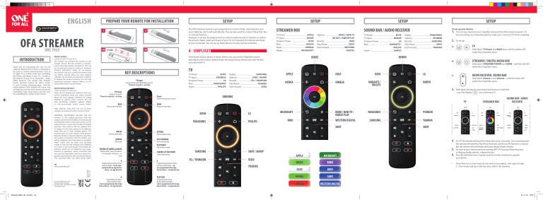 one for all remote setup