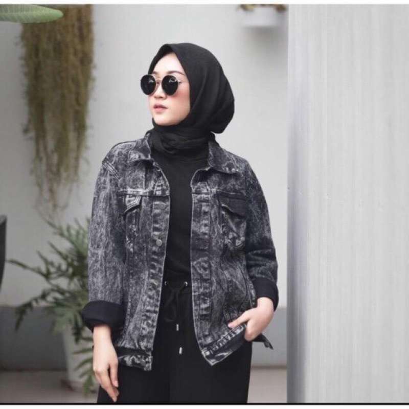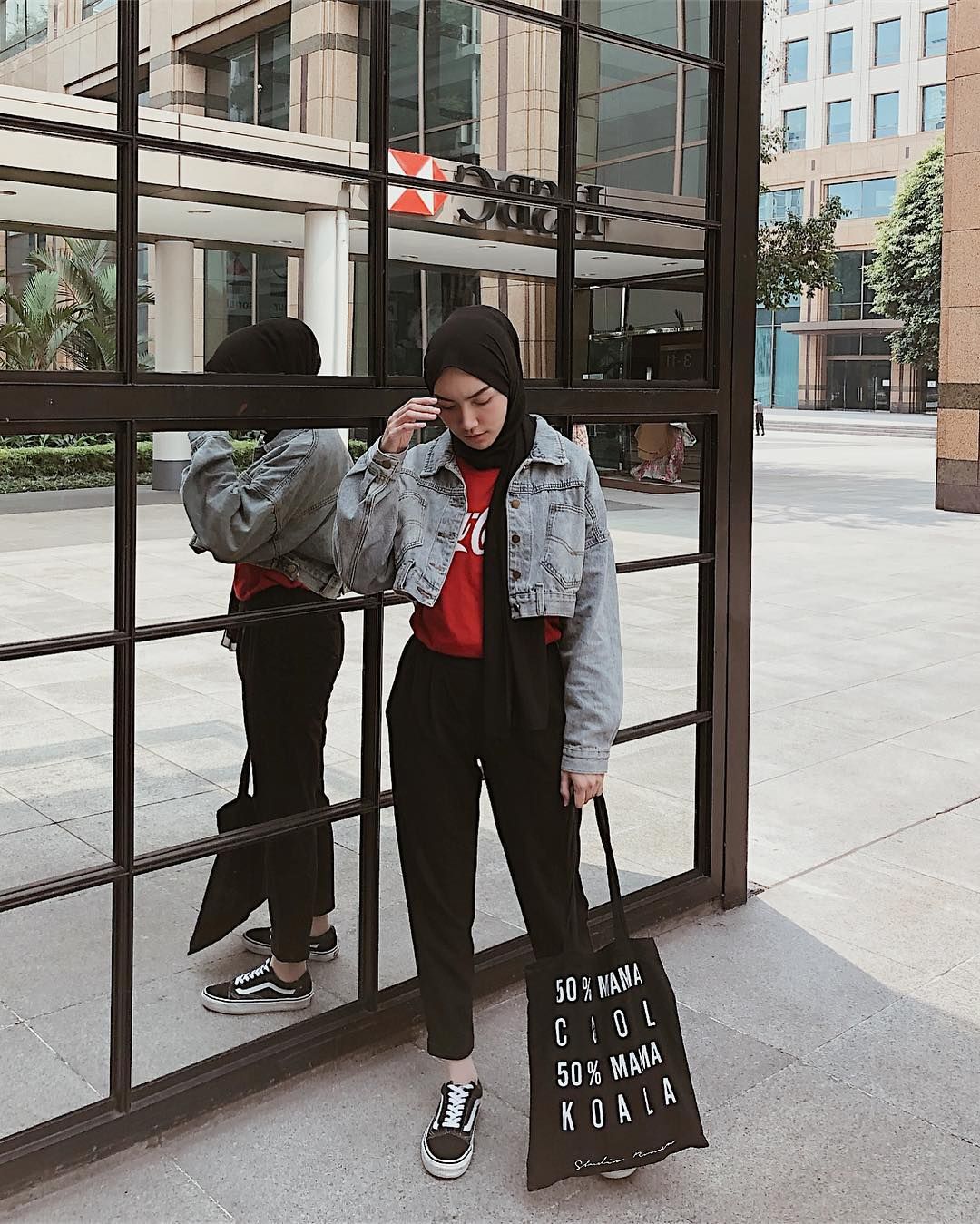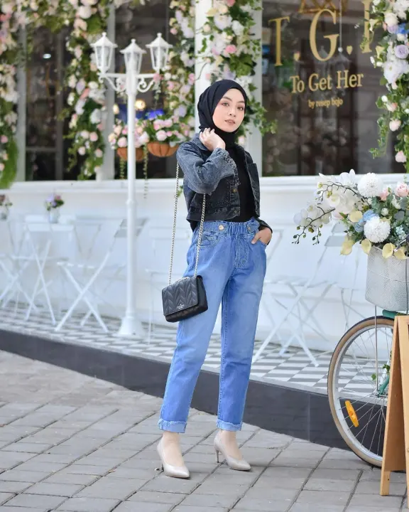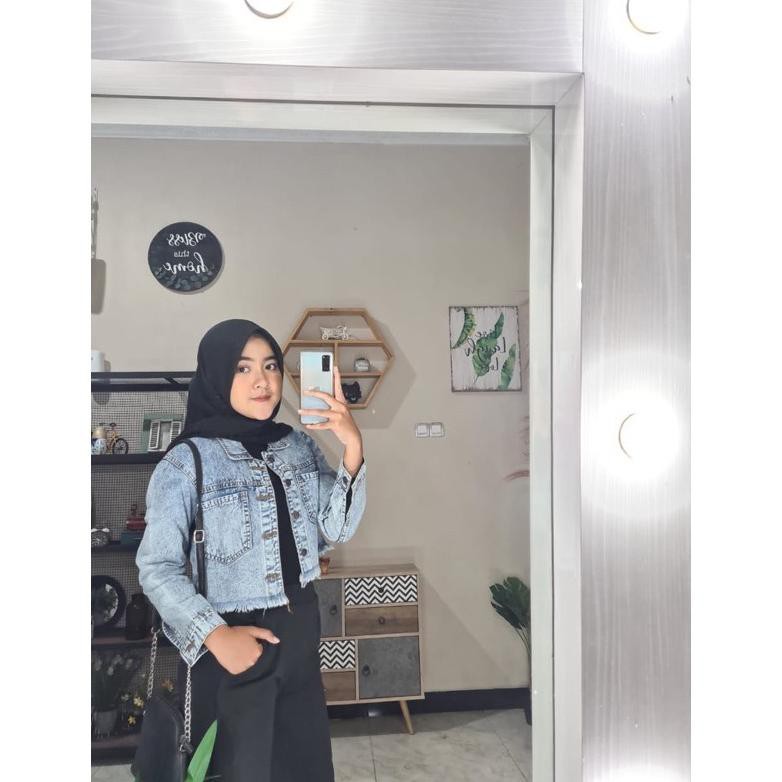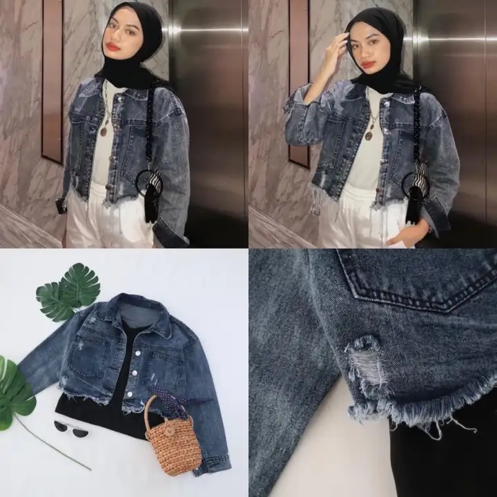 ootd jaket jeans crop hijab