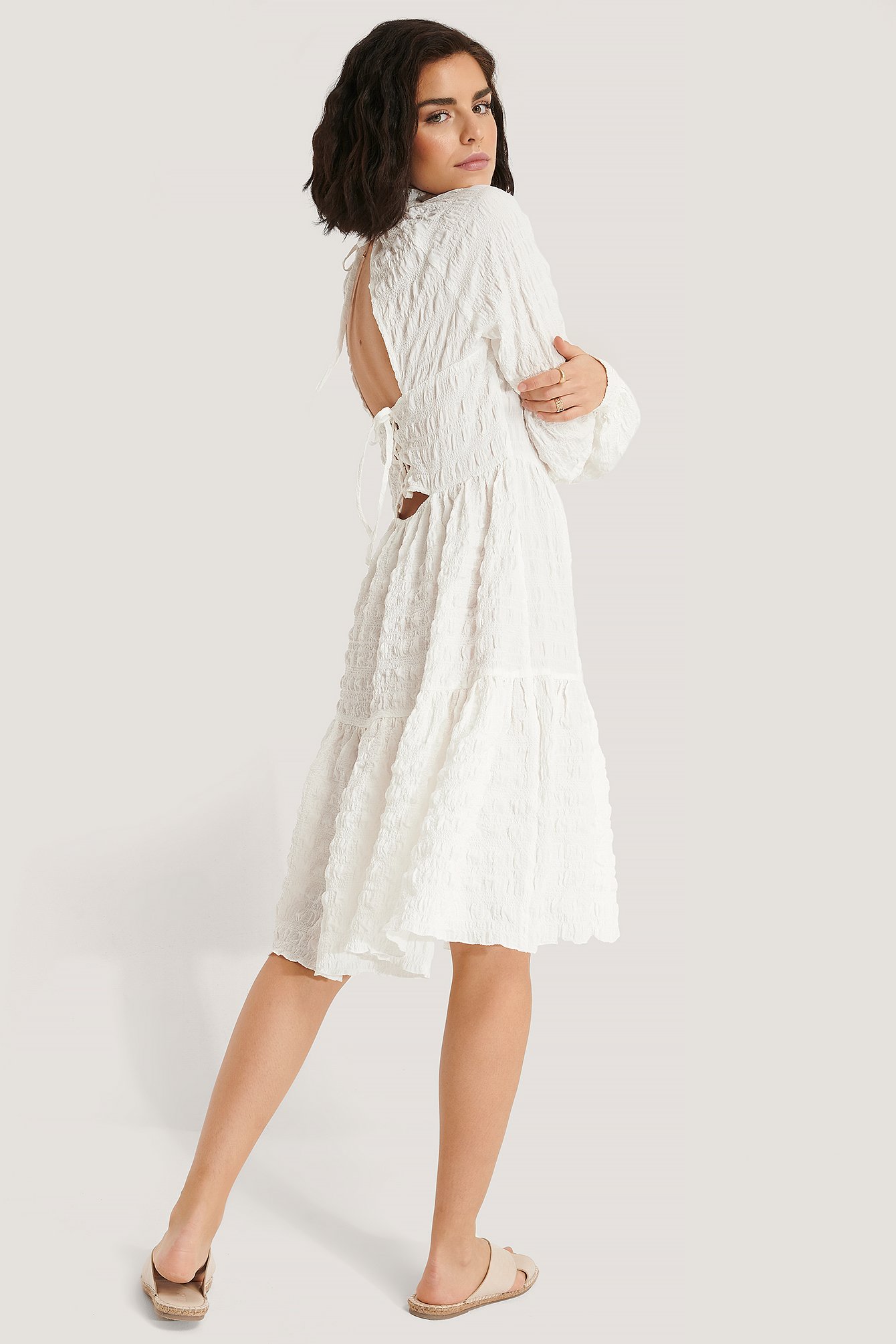 open back white dress