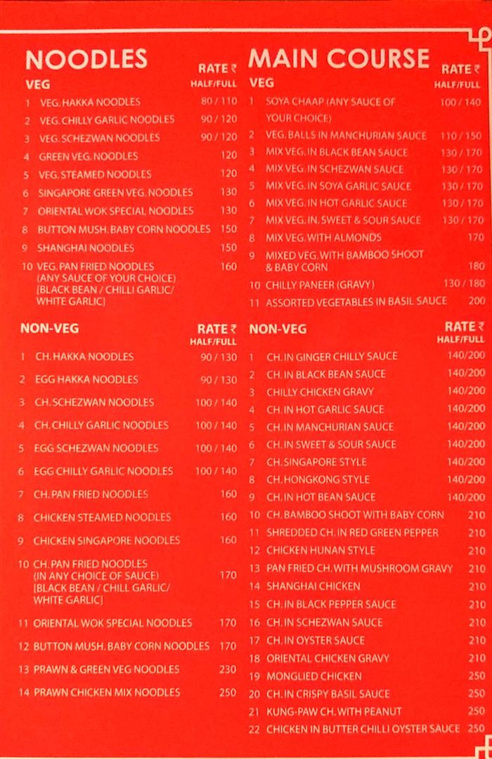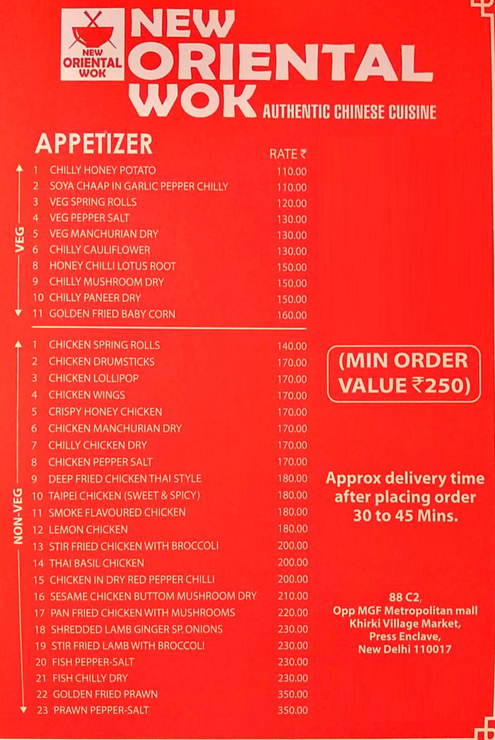 oriental wok menu