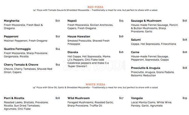 otto pizza menu