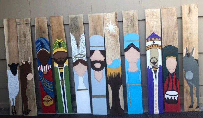 outdoor wooden nativity set
