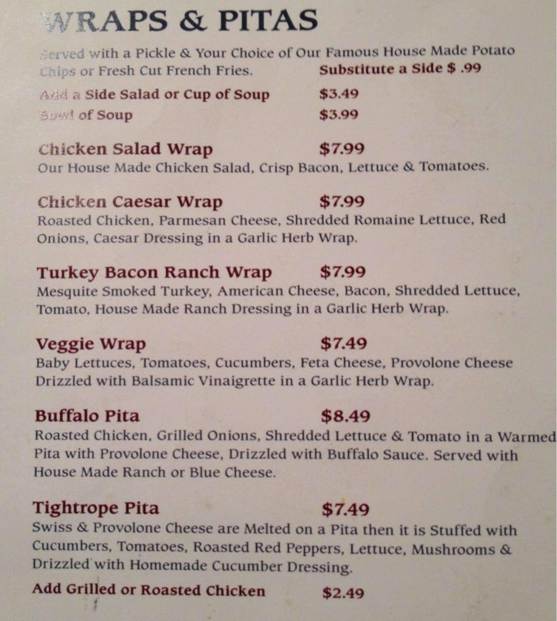 over the falls menu
