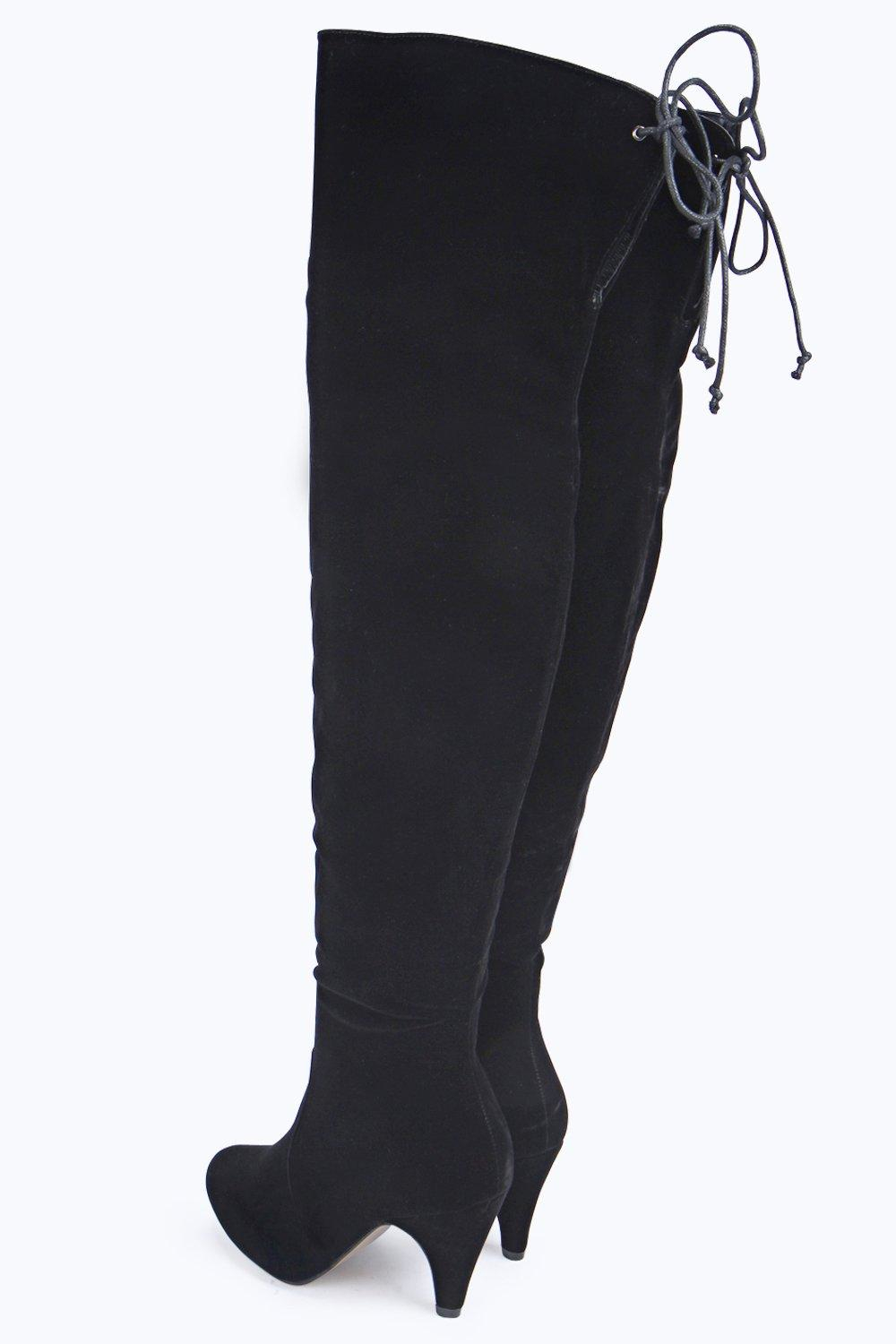 over the knee low heel boots