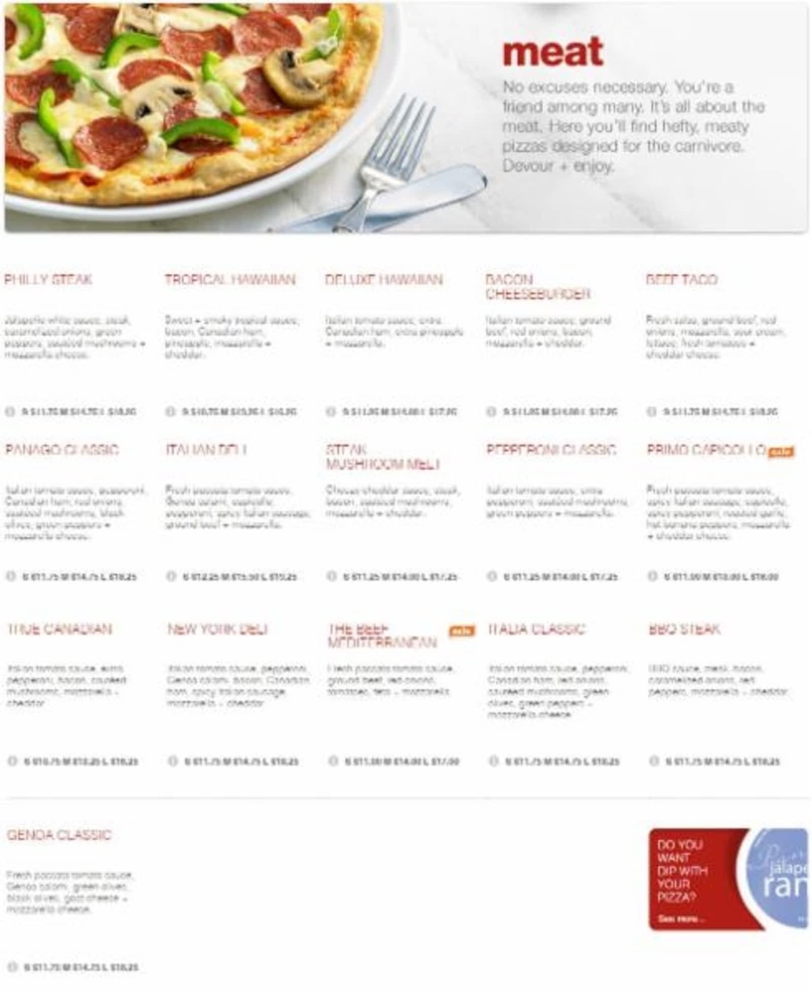 panago pizza menu