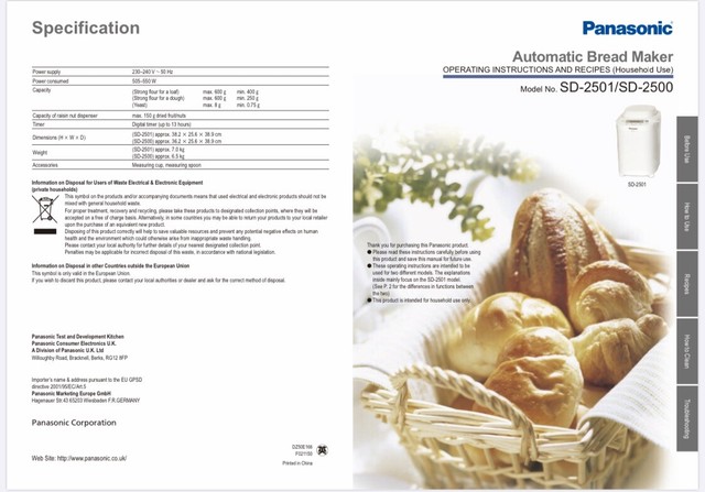 panasonic sd 2500 breadmaker