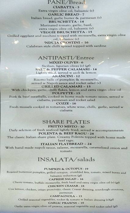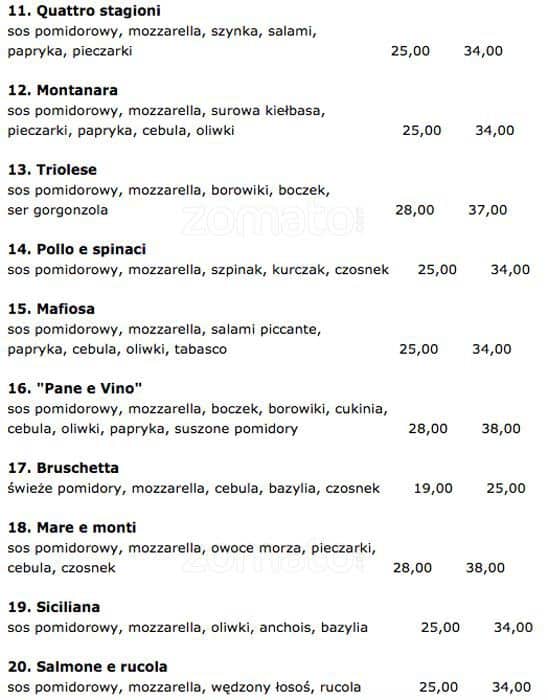 pane e vino menu