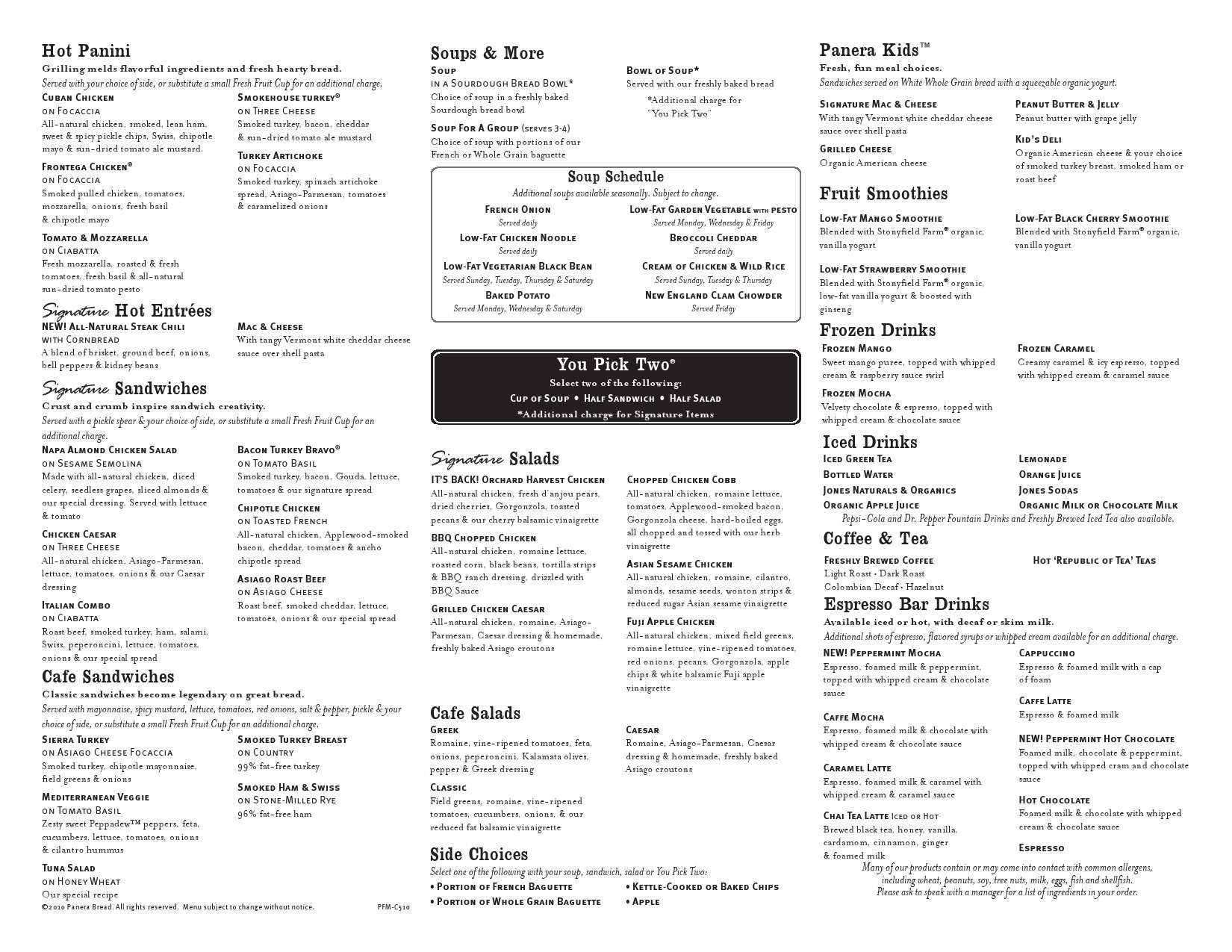 panera bread printable menu