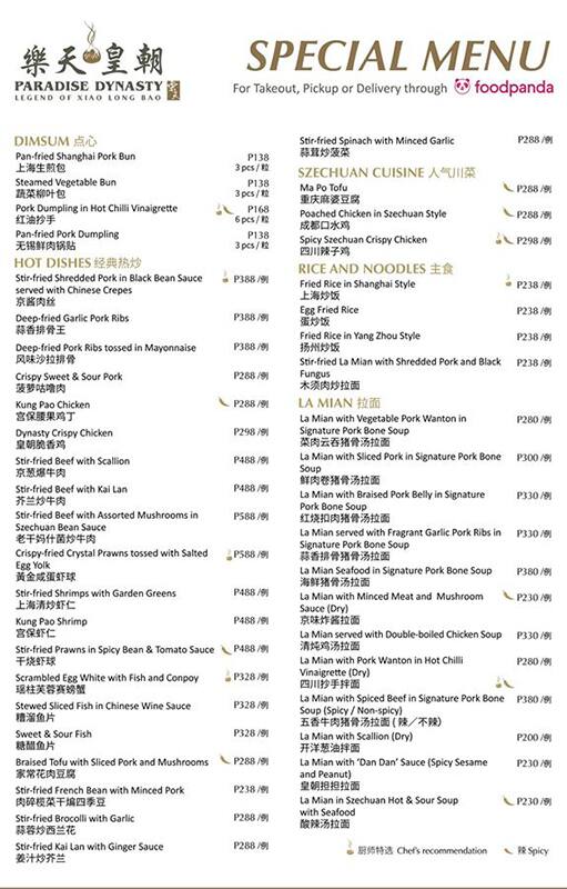 paradise dynasty menu