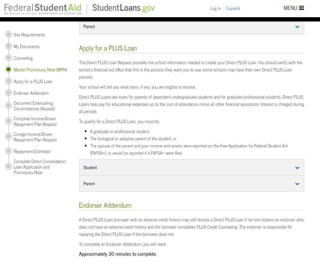parent plus loan application
