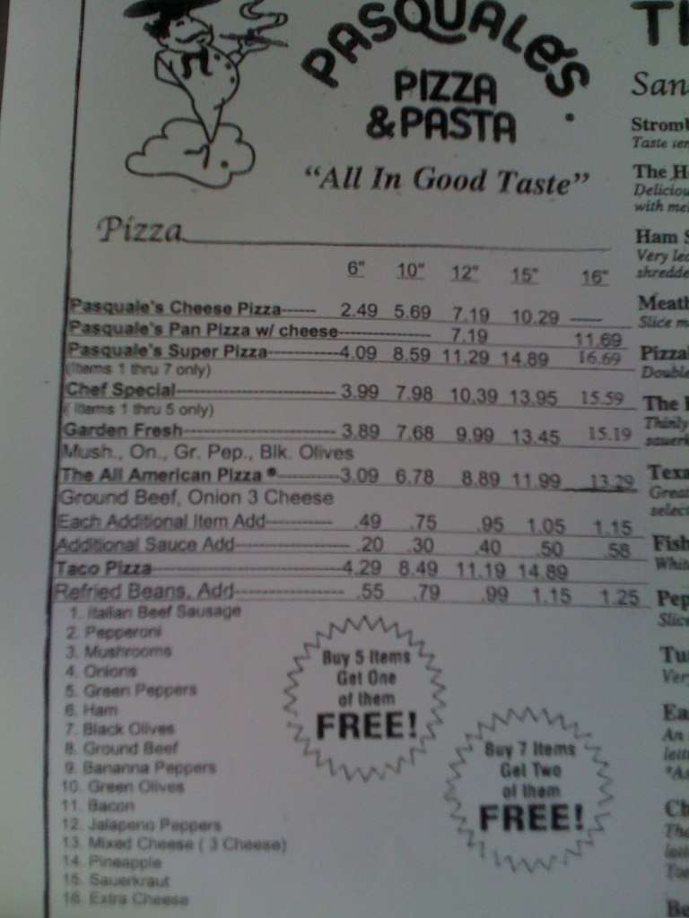 pasquale's menu