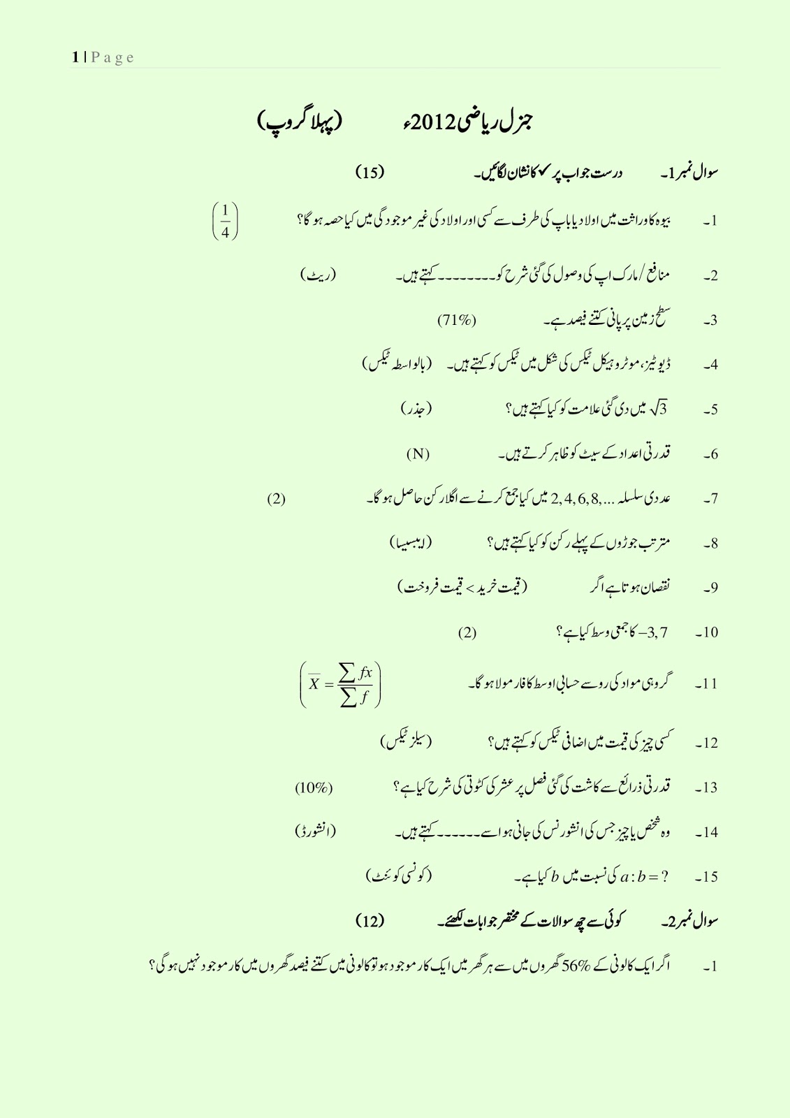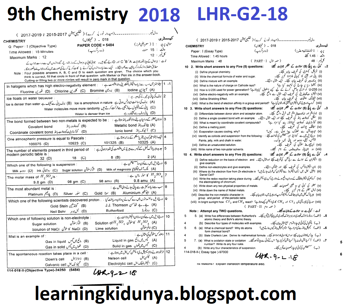 past papers 9th class