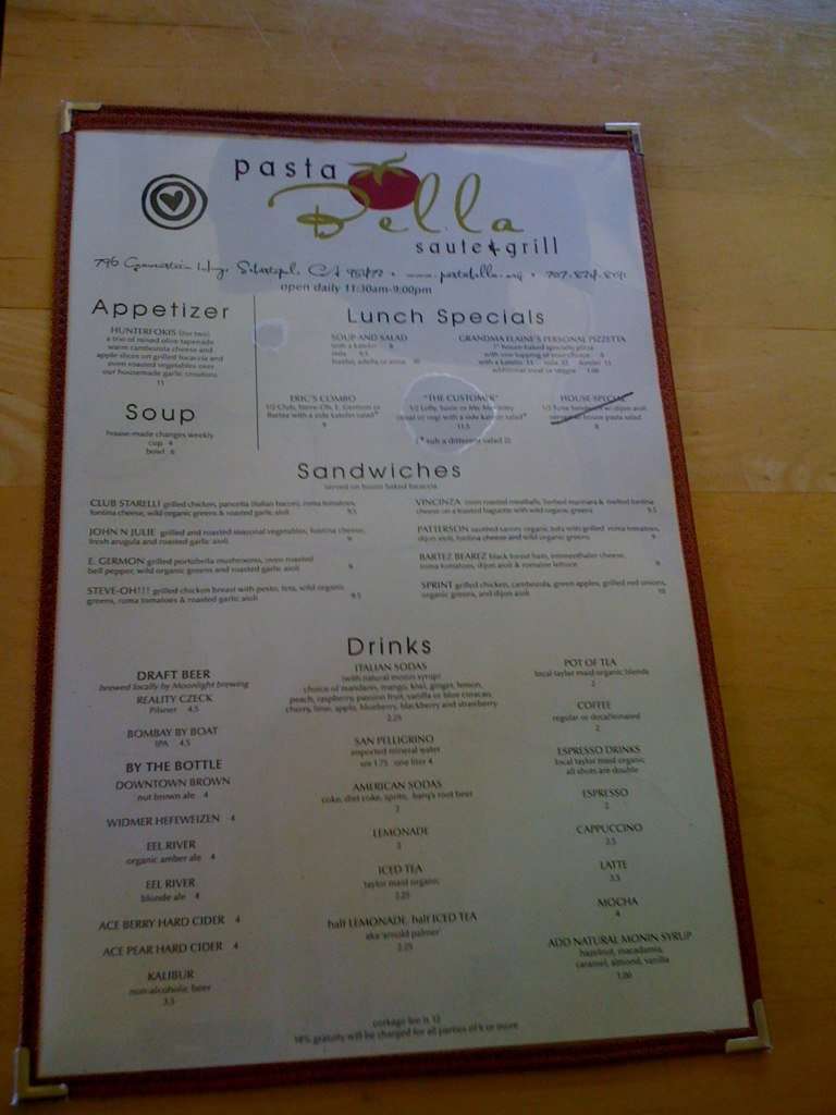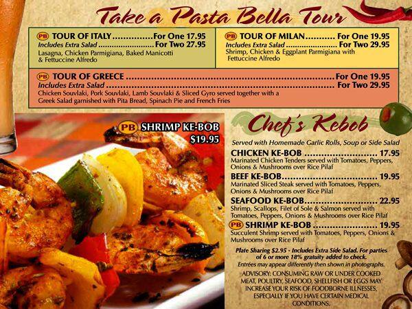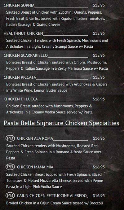 pasta bella menu