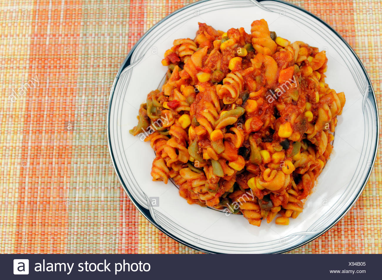 pasta in red sauce with vegetables
