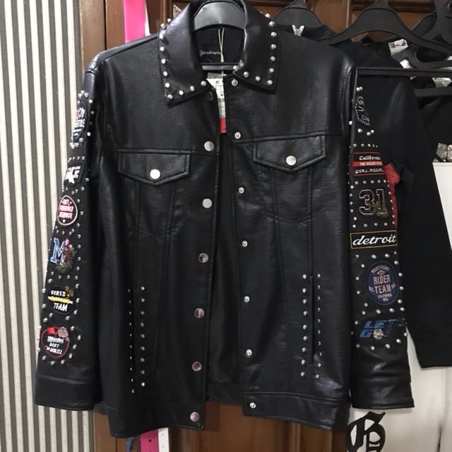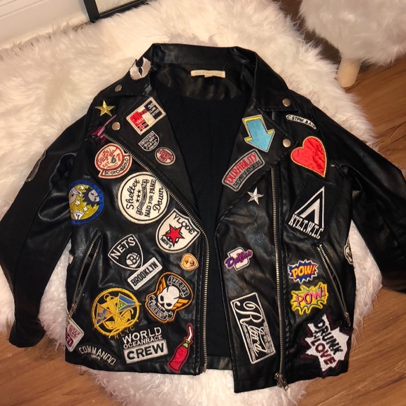patched leather jacket