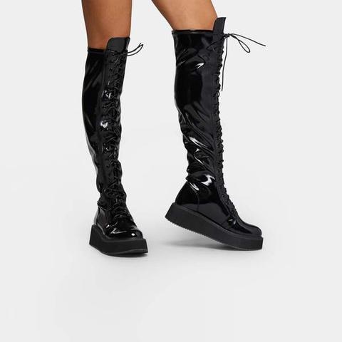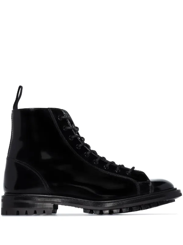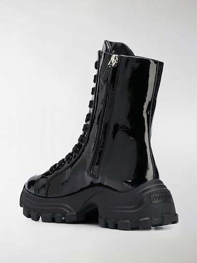 patent lace up boots