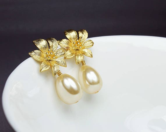 pearl gold drop earrings