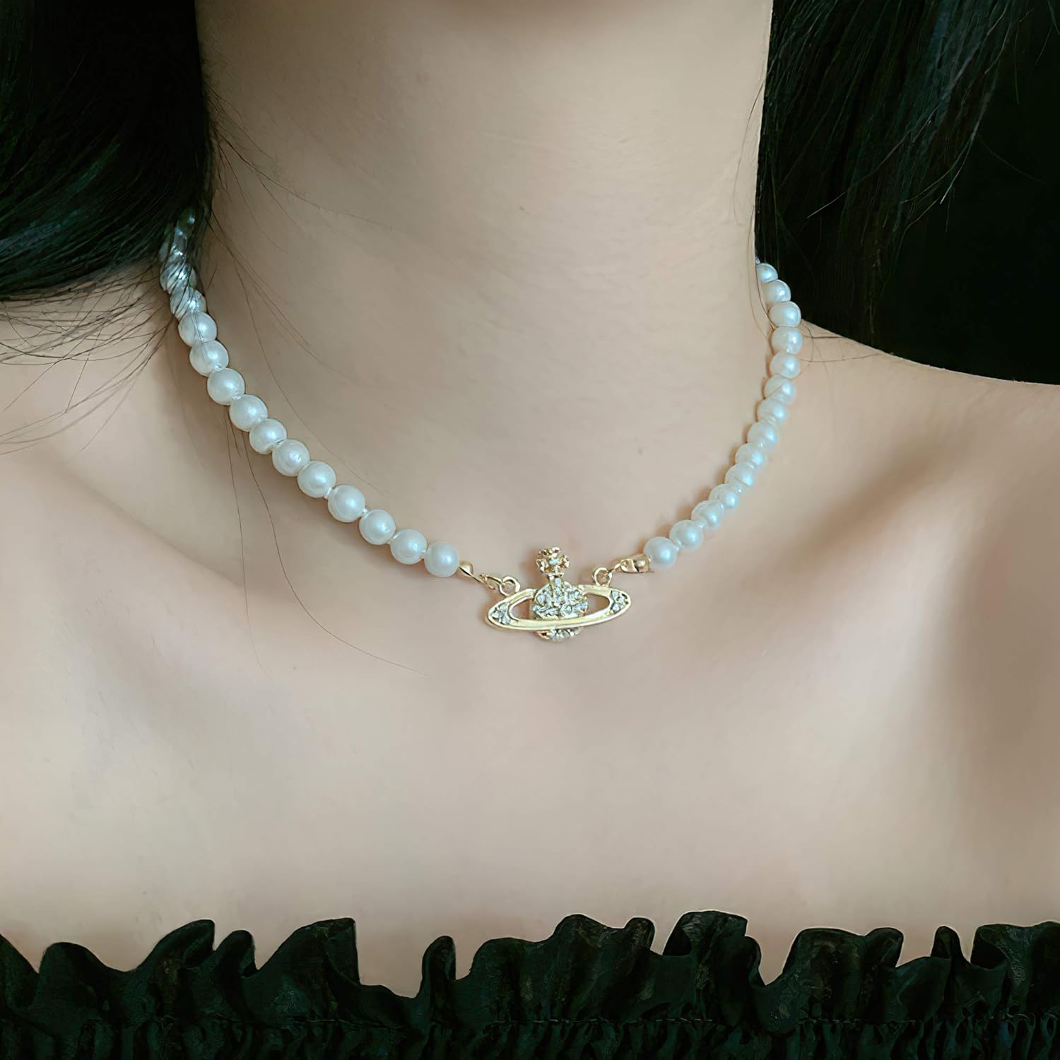 pearl necklace with planet