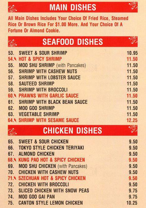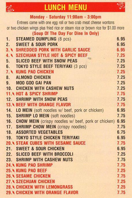 peking tokyo menu
